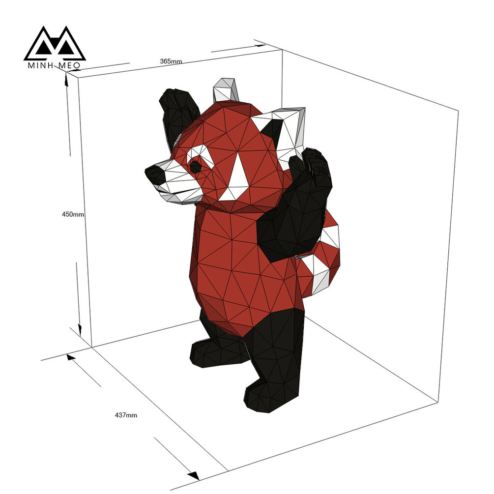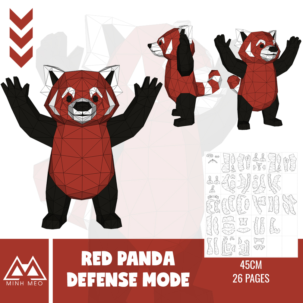 Red Panda Defense Mode papercraft 3d low poly pepakura template, DIY Paper Sculpture