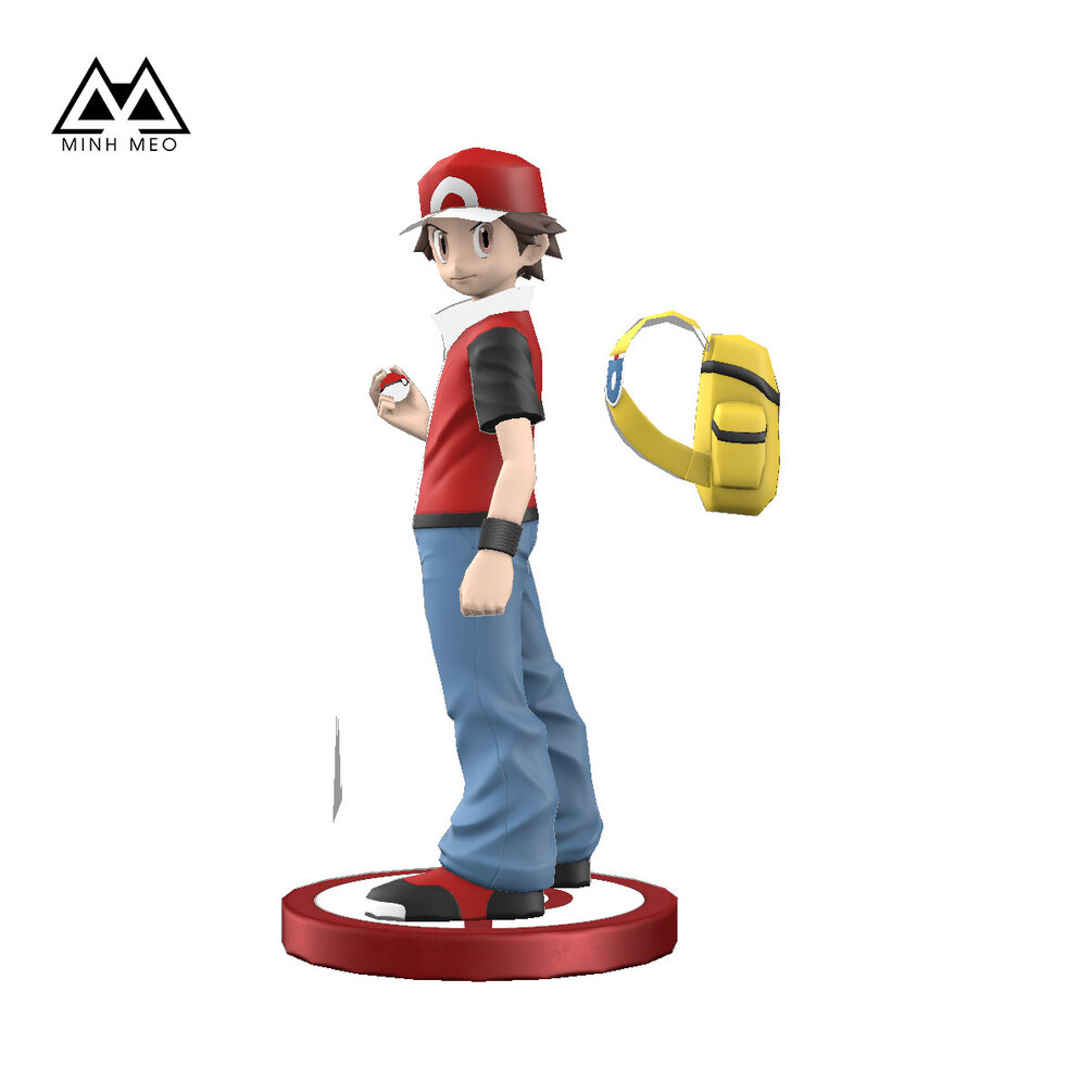 Red Pokemon trainer papercraft, Ash Ketchum Trainer pokemon papercraft 3d low poly pepakura template, DIY Paper Sculpture