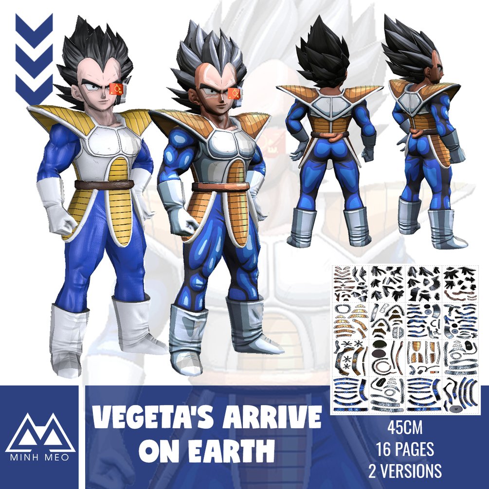 Vegeta's arrive on earth papercraft 2 texture versions, Dragon Ball Z papercraft 3d low poly pepakura template, DIY Paper Sculpture
